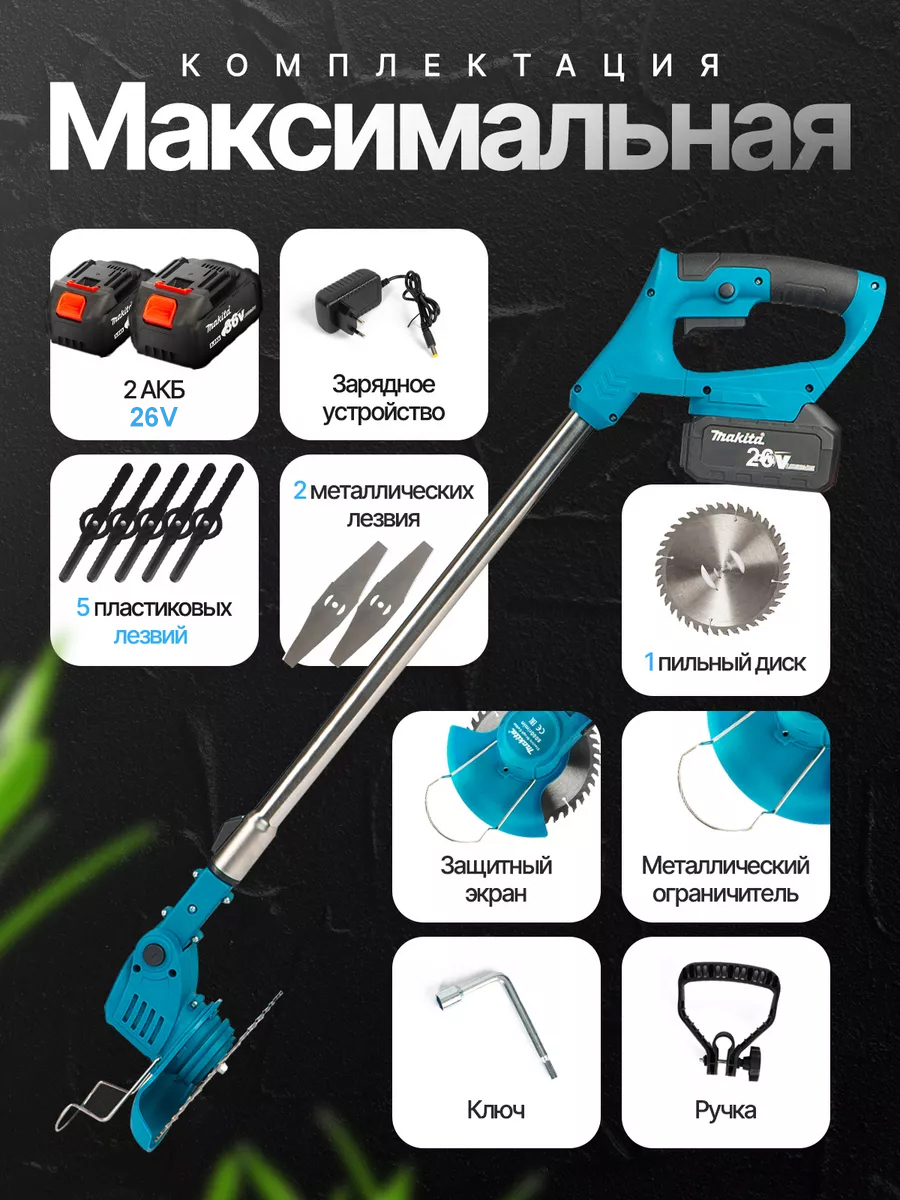 Представляем вашему вниманию инновационный аккумуляторный триммер для травы, созданный для легкости и эффективности в уходе за садом. Этот мощный инструмент идеально подходит для стрижки травы, обрезки кустарников, а также удаления и прополки сорняков в зависимости от выбранной насадки, обеспечивая профессиональные результаты без лишних усилий.